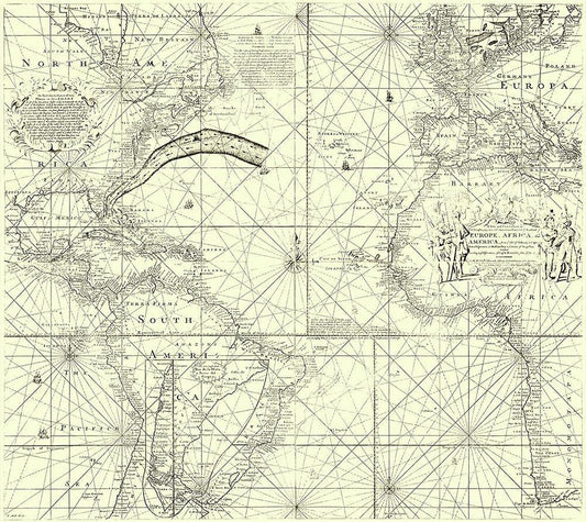 Europe Africa America - Wright 1768 White Modern Wood Framed Art Print with Double Matting by Wright