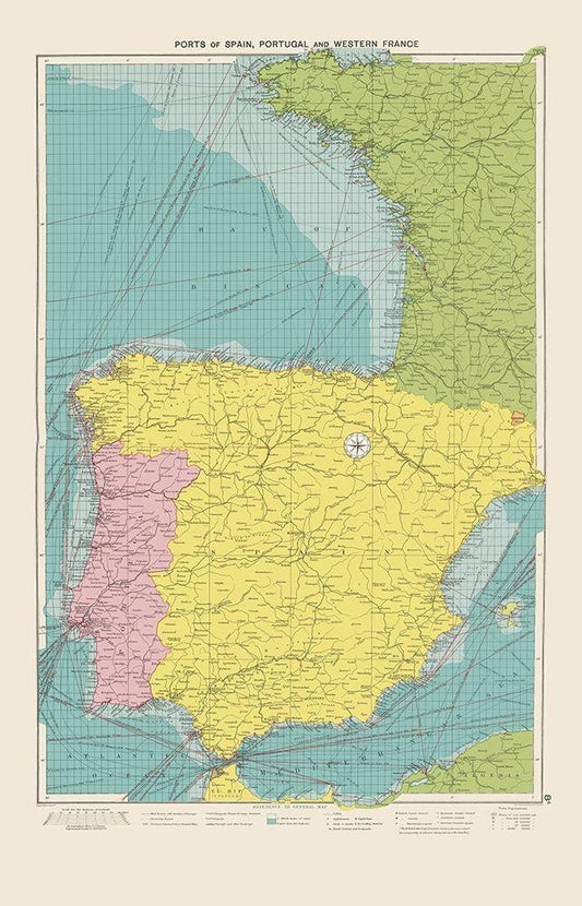 Western Ports France Spain Portugal - Hammond 1922 White Modern Wood Framed Art Print with Double Matting by Hammond