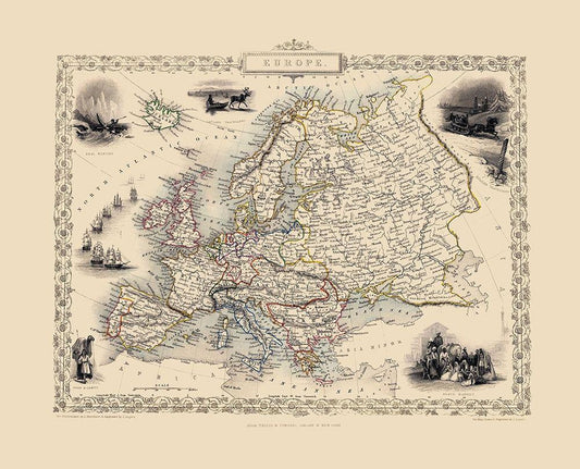 Europe - Tallis 1851 White Modern Wood Framed Art Print with Double Matting by Tallis