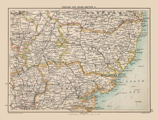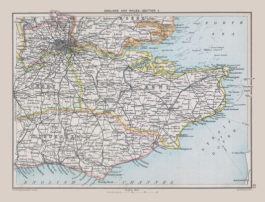 Southeastern England - Bartholomew 1892 White Modern Wood Framed Art Print with Double Matting by Bartholomew