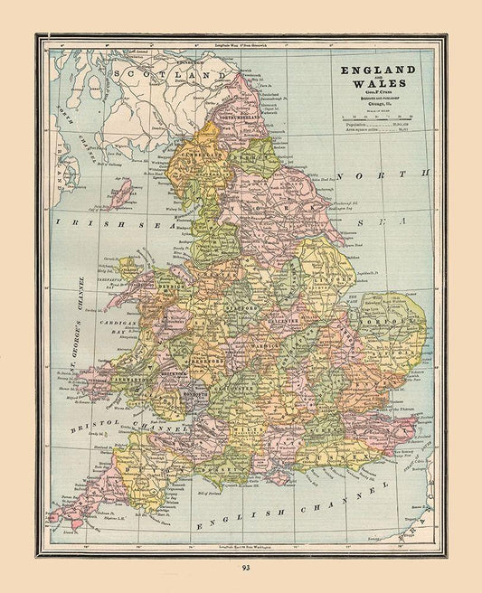 England Wales - Cram 1888 White Modern Wood Framed Art Print with Double Matting by Cram