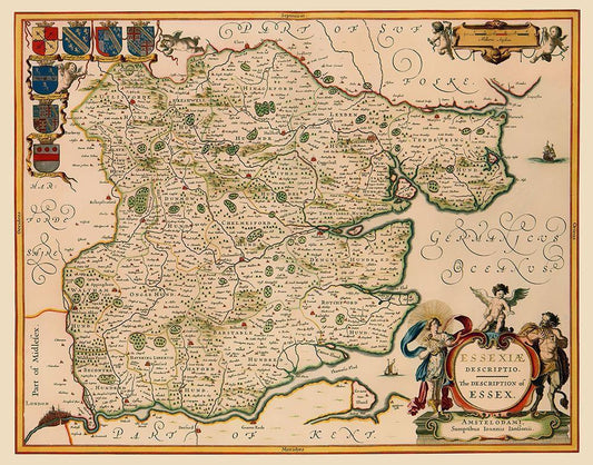 Great Britain Essex County England - Jansson 1646 White Modern Wood Framed Art Print with Double Matting by Jansson