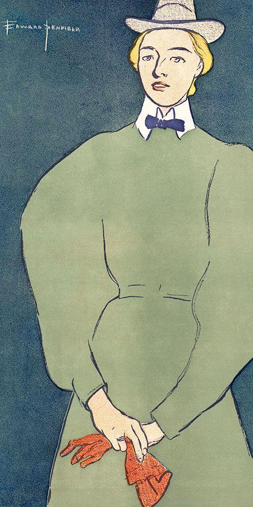 Woman holding gloves (1896) White Modern Wood Framed Art Print with Double Matting by Penfield, Edward