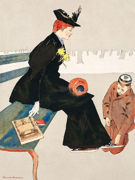 January Poster (1898) White Modern Wood Framed Art Print with Double Matting by Penfield, Edward