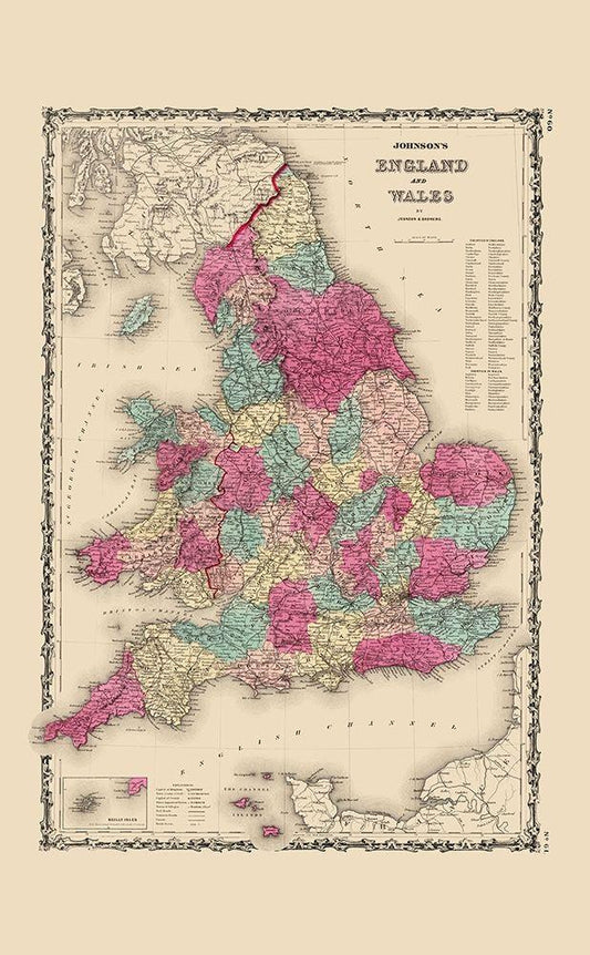Great Britain England Wales - Johnson 1860 White Modern Wood Framed Art Print with Double Matting by Johnson
