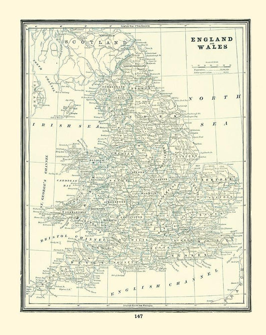 Great Britain England Wales - Rathbun 1893 White Modern Wood Framed Art Print with Double Matting by Rathbun