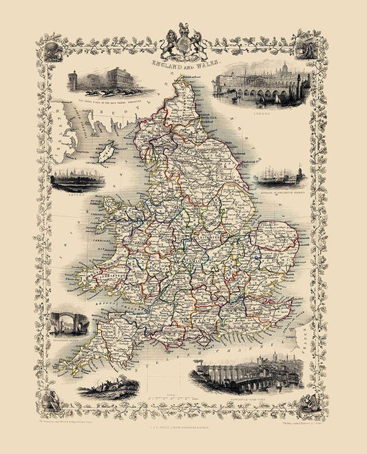 Great Britain England Wales - Tallis 1851 White Modern Wood Framed Art Print with Double Matting by Tallis
