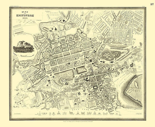 Edinburgh Plan Great Britain - Meyers 1844 White Modern Wood Framed Art Print with Double Matting by Meyers
