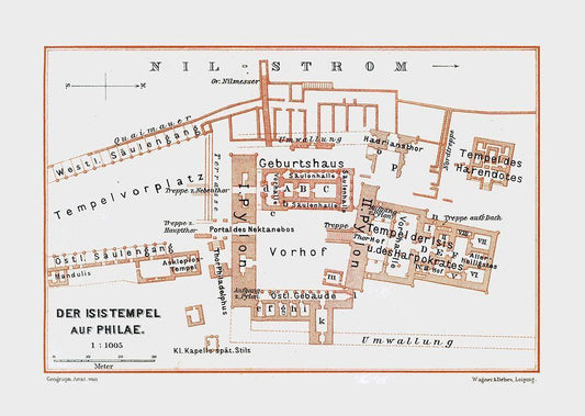 Africa Temple of Philae Egypt - Baedeker 1913 White Modern Wood Framed Art Print with Double Matting by Baedeker