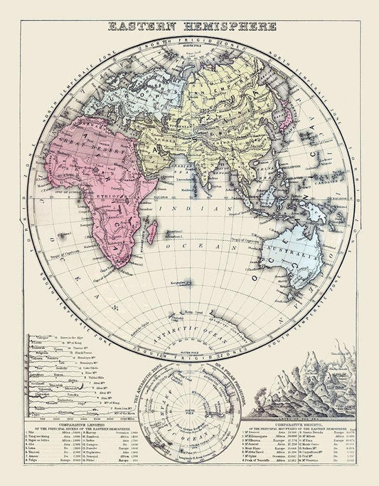 Eastern Hemisphere - Andreas 1875 White Modern Wood Framed Art Print with Double Matting by Andreas