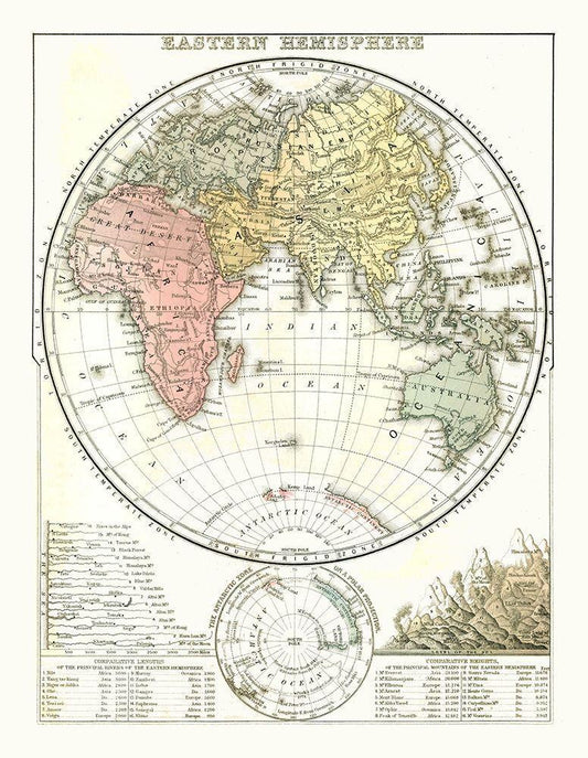 Eastern Hemisphere - Mitchell 1869 White Modern Wood Framed Art Print with Double Matting by Mitchell