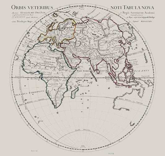 Eastern Hemisphere -De Lisle 1731 White Modern Wood Framed Art Print with Double Matting by De L''isle