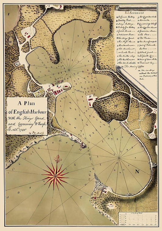 Caribbean English Harbour Antigua Nautical White Modern Wood Framed Art Print with Double Matting by Talbot