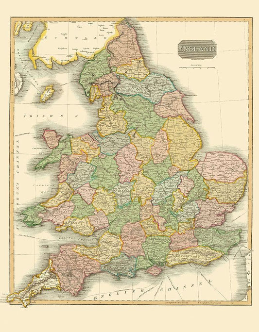 Great Britain England - Thomson 1814 White Modern Wood Framed Art Print with Double Matting by Thomson