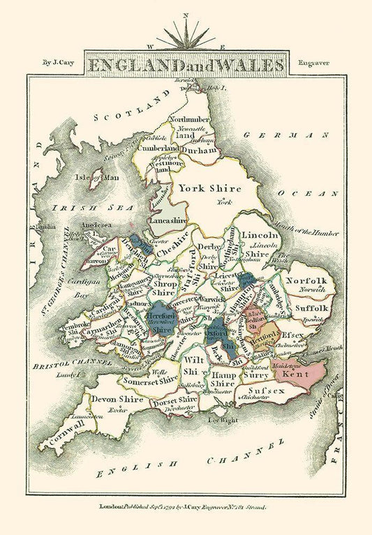 Great Britain England Wales - Cary 1792 White Modern Wood Framed Art Print with Double Matting by Cary