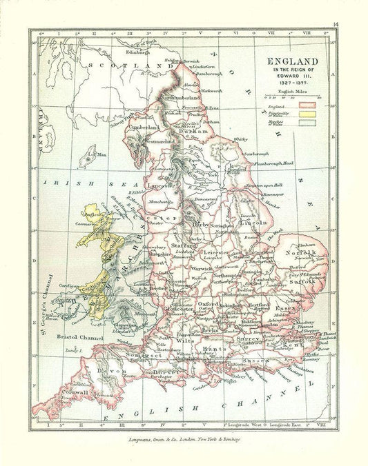 Reign of Edward III England - Gardiner 1902 White Modern Wood Framed Art Print with Double Matting by Gardiner