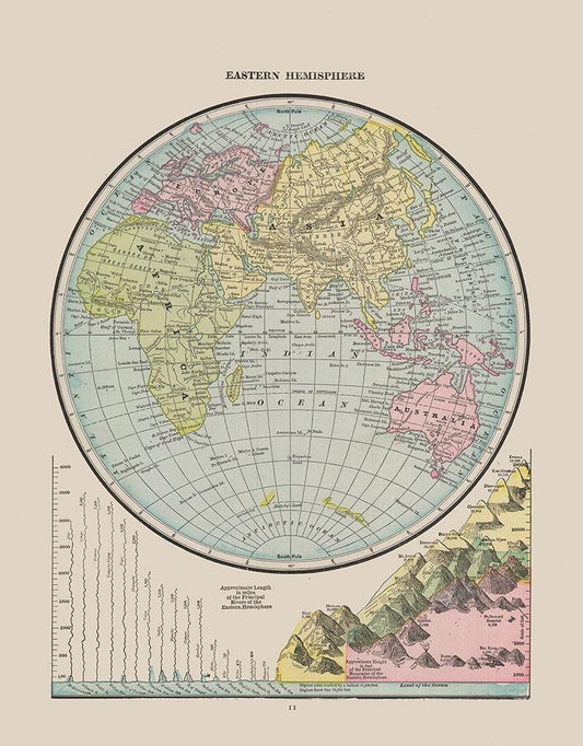 Eastern Hemisphere River Lengths - Cram 1888 White Modern Wood Framed Art Print with Double Matting by Cram