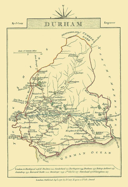 Durham County England - Cary 1792 White Modern Wood Framed Art Print with Double Matting by Cary
