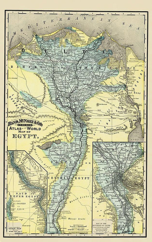 Middle East Egypt - Rand McNally 1892 White Modern Wood Framed Art Print with Double Matting by Rand McNally