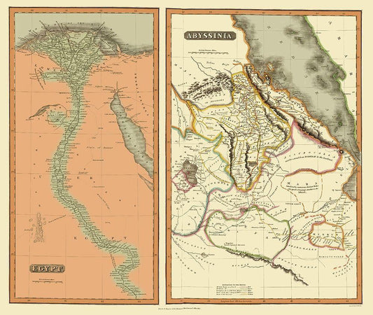 Middle East Egypt Abyssinia - Thomson 1817 White Modern Wood Framed Art Print with Double Matting by Thomson