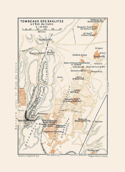 Africa Tombs of the Kalifs Egypt - Baedeker 1913 White Modern Wood Framed Art Print with Double Matting by Baedeker