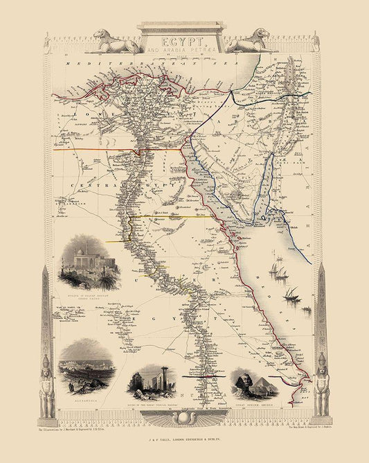Middle East Egypt Arabia Petraea - Tallis 1851 White Modern Wood Framed Art Print with Double Matting by Tallis