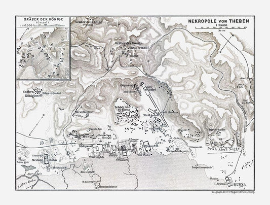 Africa Theban Necropolis Egypt - Baedeker 1913 White Modern Wood Framed Art Print with Double Matting by Baedeker