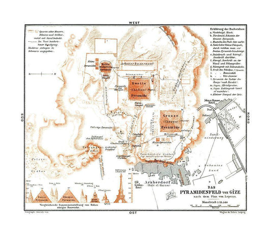 Africa Giza Necropolis Egypt - Baedeker 1913 White Modern Wood Framed Art Print with Double Matting by Baedeker