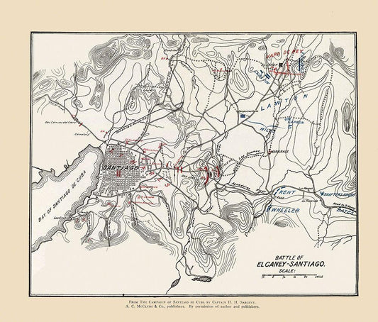 El Carney-Santiago Battle Map 1 of 3 1907 White Modern Wood Framed Art Print with Double Matting by McClurg
