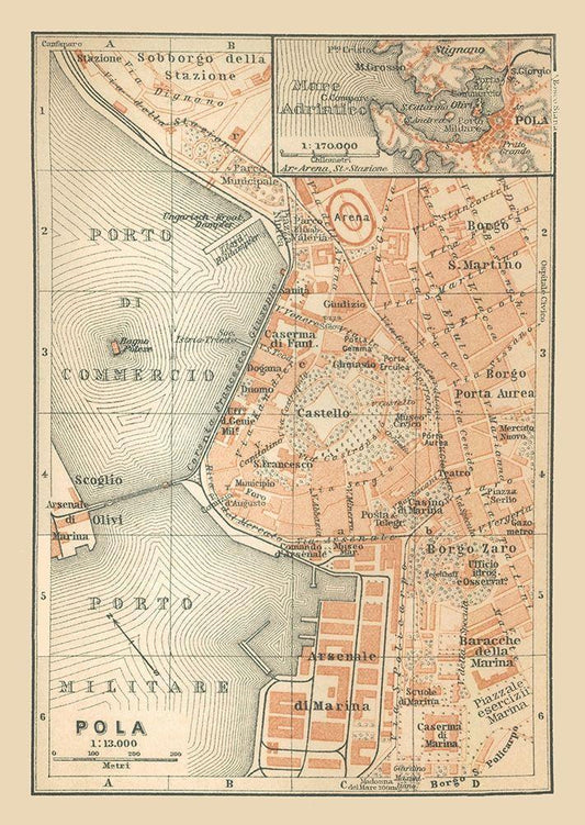 Pula Croatia Europe - Baedeker 1910 White Modern Wood Framed Art Print with Double Matting by Baedeker