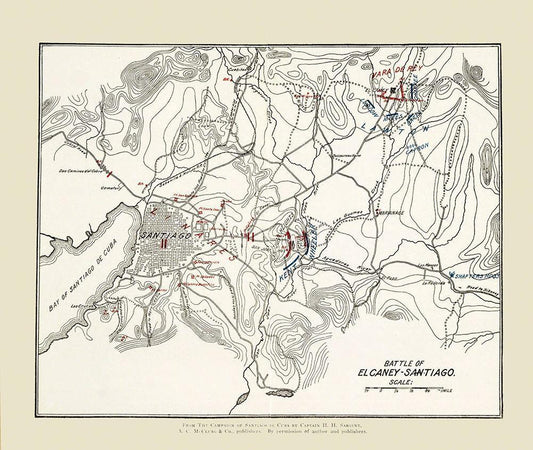 El Carney-Santiago Battle Map 2 of 3 1907 White Modern Wood Framed Art Print with Double Matting by McClurg