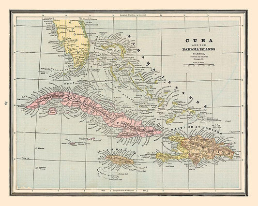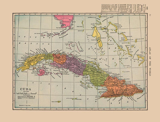 Central America Cuba Bahama Islands - Cram 1888 White Modern Wood Framed Art Print with Double Matting by Cram
