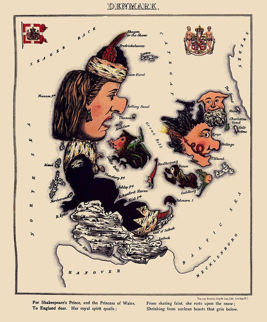Scandinavia Denmark - Hodder 1869 White Modern Wood Framed Art Print with Double Matting by Hodder