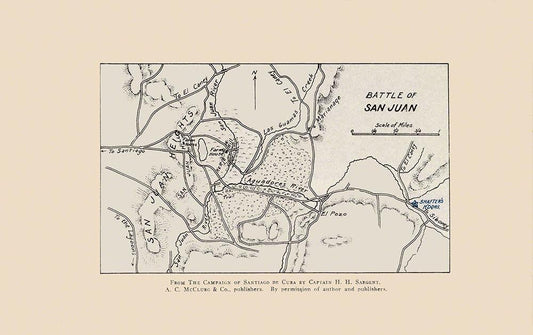 San Juan Battle Map 2 of 2 1907 White Modern Wood Framed Art Print with Double Matting by McClurg