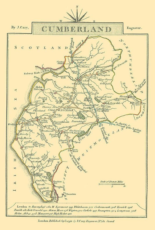 Cumberland County England - Cary 1792 White Modern Wood Framed Art Print with Double Matting by Cary