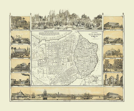 Central America Havana Cuba - May 1853 White Modern Wood Framed Art Print with Double Matting by May