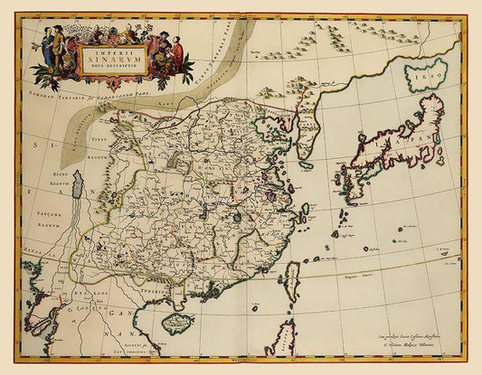 Asia China Korea Japan - Blaeu 1655 White Modern Wood Framed Art Print with Double Matting by Blaeu