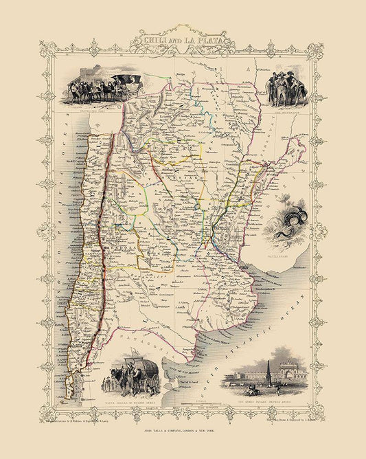 South America La Plata Uruguay - Tallis 1851 White Modern Wood Framed Art Print with Double Matting by Tallis