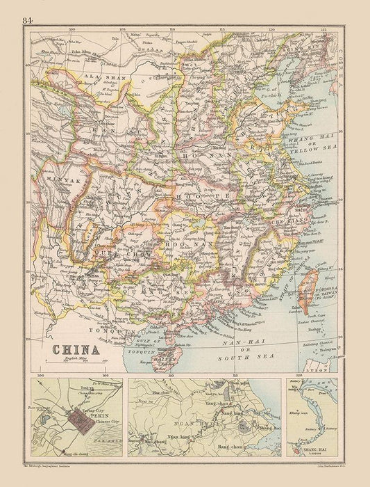 Asia Chinese Empire China - Bartholomew 1892 White Modern Wood Framed Art Print with Double Matting by Bartholomew
