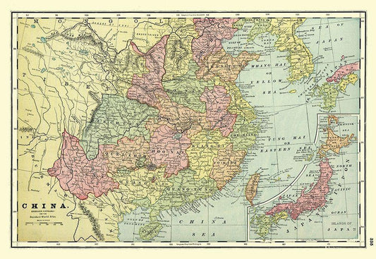 Standard World Atlas China - Cram 1901 White Modern Wood Framed Art Print with Double Matting by Cram