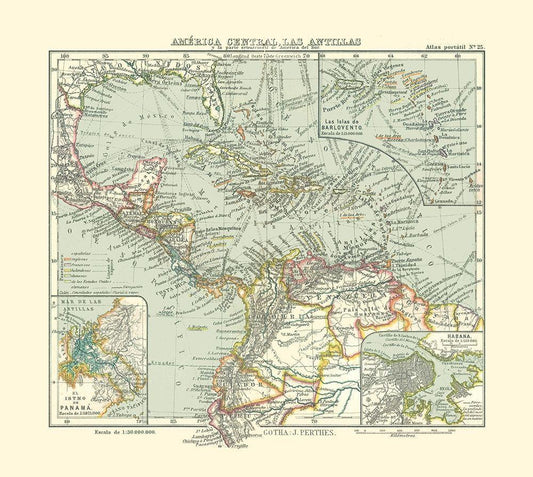 Central America Antilles - Perthes 1921 White Modern Wood Framed Art Print with Double Matting by Perthes