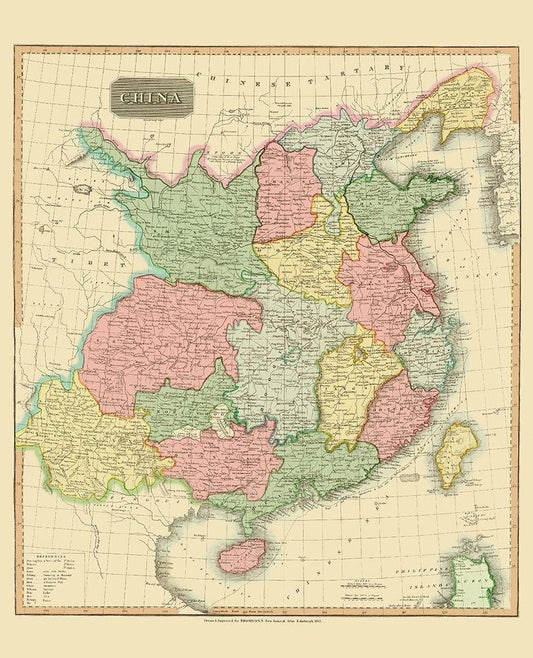 China - Stieler 1885 White Modern Wood Framed Art Print with Double Matting by Stieler