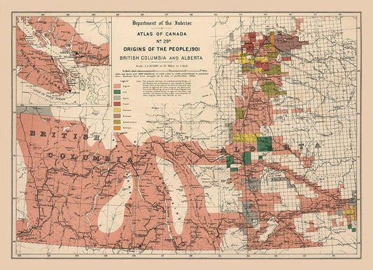 British Columbia Alberta Canada - White 1906 White Modern Wood Framed Art Print with Double Matting by White