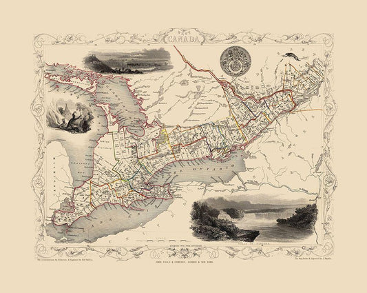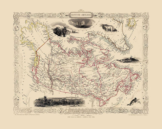 British America Canada - Tallis 1851 White Modern Wood Framed Art Print with Double Matting by Tallis