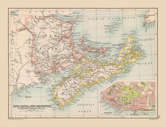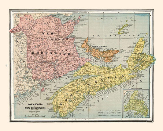 New Brunswick Nova Scotia Canada - Cram 1888 White Modern Wood Framed Art Print with Double Matting by Cram