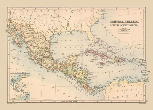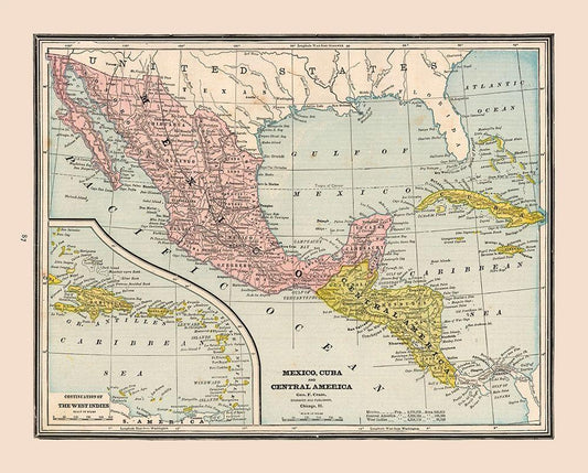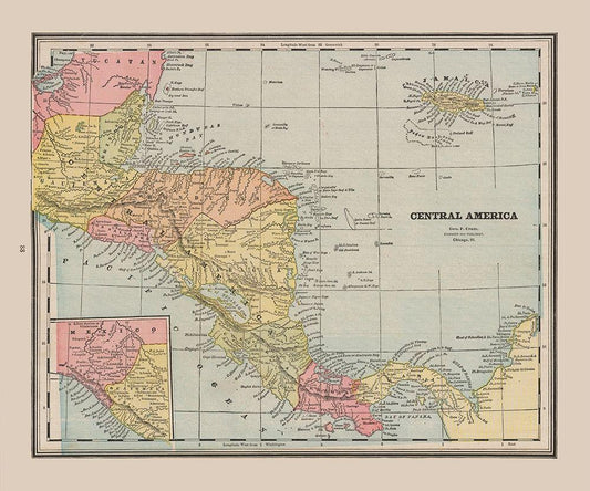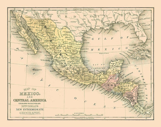 Central America Mexico - Mitchell 1869 White Modern Wood Framed Art Print with Double Matting by Mitchell