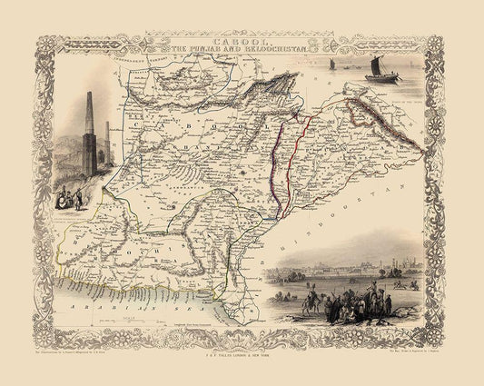 Asia Afghanistan Iran Pakistan - Tallis 1851 White Modern Wood Framed Art Print with Double Matting by Tallis