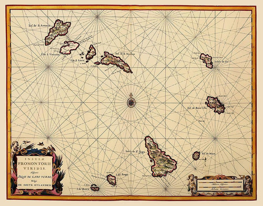 Africa Cape Verde Islands - Blaeu 1667 White Modern Wood Framed Art Print with Double Matting by Blaeu