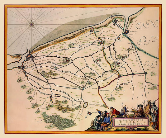 Calais Region France - Blaeu 1662 White Modern Wood Framed Art Print with Double Matting by Blaeu