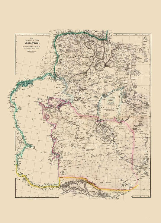 Caspian Sea Region Asia - Arrowsmith 1844 White Modern Wood Framed Art Print with Double Matting by Arrowsmith